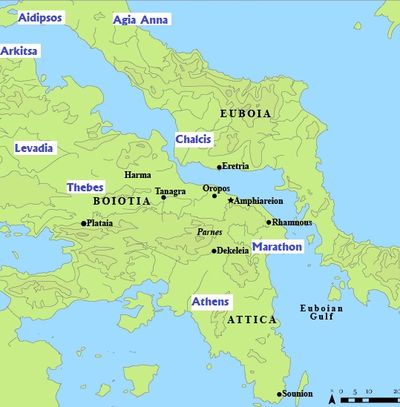 Central Greece is where the city of Marathon is located , where the famous battle took place in Ancient Greece and the Marathon run originated. It's where the picturesque island of Evia, Thermopylae where the 300 Spartans fell, the ancient sacred precinct of Delphi and other beautiful cities and villages are located.